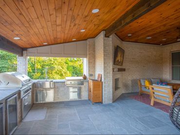 We build outdoor living spaces that tie everything together—patios, kitchens, fire pits, pergolas, pavilions, decking, lighting, and more.